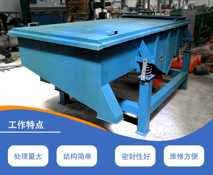 直線振動(dòng)篩利用振動(dòng)電機(jī)激振作為振動(dòng)源,使物料在篩網(wǎng)上被拋起,同時(shí)向前作直線運(yùn)動(dòng),物料從給料機(jī)均勻地進(jìn)入篩分機(jī)的進(jìn)料口,通過多層篩網(wǎng)產(chǎn)生數(shù)種規(guī)格的篩上物、篩下物、分別從各自的出口排出。具有耗能低、產(chǎn)量高、結(jié)構(gòu)簡單、易維修、全封閉結(jié)構(gòu),無粉塵溢散,自動(dòng)排料,更適合于流水線作業(yè)。