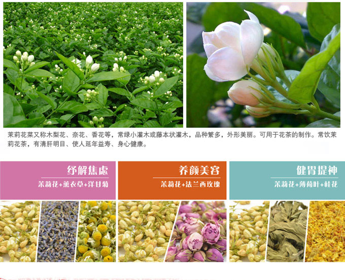 茉莉花茶產(chǎn)于廣西橫縣,其茶香與茉莉花香交互融合,有“窨得茉莉無上味,列作人間第香”的美譽(yù)。新中國成立以來,橫縣茉莉花茶直是國家的外事禮茶。茉莉花茶是將茶葉和茉莉鮮花進(jìn)行拼和、窨制,使茶葉吸收花香而成的茶 。其香氣鮮靈持久、滋味醇厚鮮爽、湯色黃綠明亮、葉底嫩勻柔軟。經(jīng)過系列工藝流程窨制而成的茉莉花茶,具有安神、解抑郁、健脾理氣、抗衰老防輻射、提高機(jī)體免疫力的功效,是種健康飲品。
