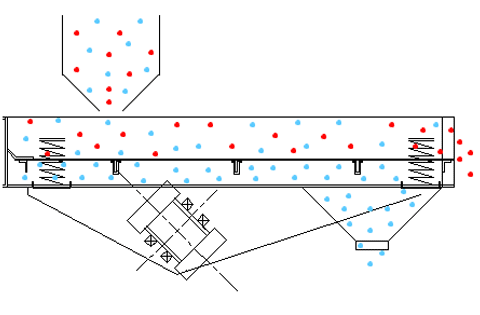 直線振動(dòng)篩在篩分過程中利用振動(dòng)電機(jī)激振作為振動(dòng)動(dòng)力來源,使物料在篩網(wǎng)上被拋起,同時(shí)向前作直線運(yùn)動(dòng),物料從直線振動(dòng)篩均勻地進(jìn)入篩分機(jī)的進(jìn)料口,通過多層篩網(wǎng)產(chǎn)生數(shù)種規(guī)格的篩上物、篩下物、分別從各自的出口排出。然后就可以篩分出不同尺寸的物料了。
