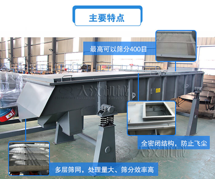 產(chǎn)品介紹:高頻直線振動篩振動電機的轉(zhuǎn)速為3000r/min,篩分效率高,篩機處理量大,高可以達到20噸/時,適合流水線自動糊作業(yè),并且篩機采用全密閉結(jié)構(gòu),可減少粉塵飛揚現(xiàn)象。