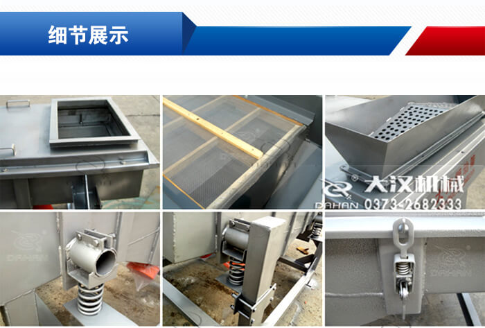 大漢小型直線振動篩按照材質(zhì)可以分為碳鋼、不銹鋼以及全不銹鋼材質(zhì),其篩面層數(shù)也能設(shè)計成1-5層,可以同時篩選2-6種不同粒度規(guī)格的物料。