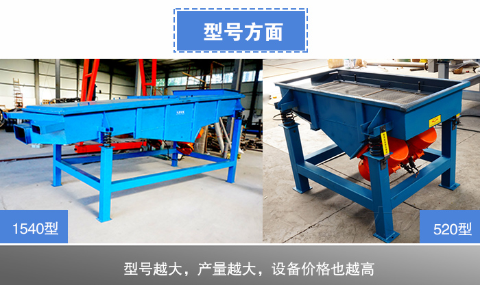 塑料直線振動篩520型到1540型,不同型號的塑料顆粒直線振動篩篩面長度和寬度是不同的,單位時(shí)間內(nèi)處理量也不同,型號越大,產(chǎn)量越大,塑料顆粒直線振動篩價(jià)格就越貴,所以用戶要結(jié)合自身篩分產(chǎn)量合理選擇型號。