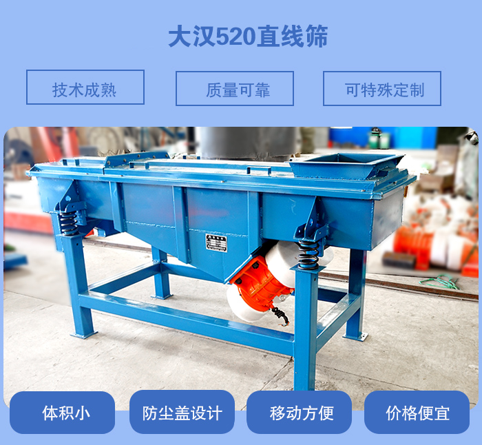 DZSF-520型,(寬)500mm×2000mm(長(zhǎng)),體積小移動(dòng)方便,價(jià)格便宜。520直線振動(dòng)篩按材質(zhì)分為304不銹鋼材質(zhì)和碳鋼材質(zhì);按層數(shù)分為520單層直線振動(dòng)篩,520兩層直線振動(dòng)篩,520三層直線振動(dòng)篩,520四層直線振動(dòng)篩,520五層直線振動(dòng)篩??蔀榭蛻袅可矶ㄗ鎏厥庖蟮闹本€振動(dòng)篩。