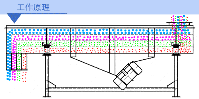 3、閉合電源開關(guān),確認(rèn)振動電機(jī)同步反向旋轉(zhuǎn),進(jìn)行10-20分鐘空運(yùn)轉(zhuǎn),設(shè)備在運(yùn)行時如有異常聲音,應(yīng)迅速關(guān)機(jī)進(jìn)行檢查處理。設(shè)備運(yùn)轉(zhuǎn)正常后,可將少量需篩分的物料通過進(jìn)料口設(shè)入篩機(jī)內(nèi),確認(rèn)物料向出料口方向行進(jìn),然后逐漸增加到所需和所能承受的給料量。
